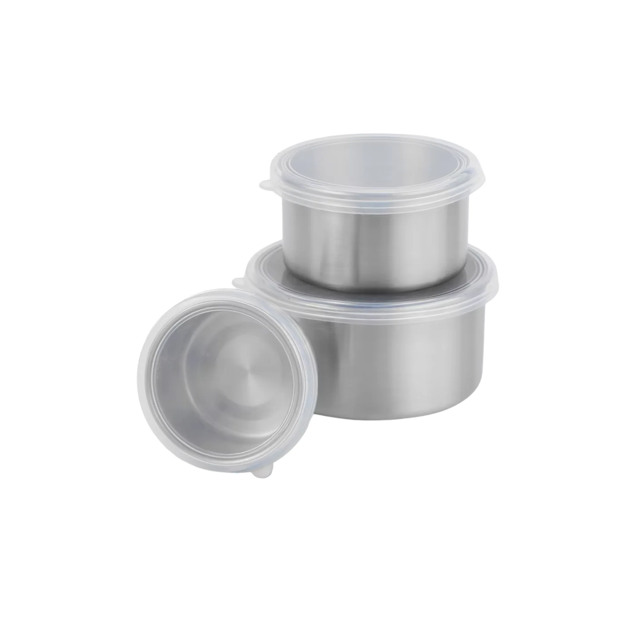 Stainless Steel Round Container Set – 3 Stackable Containers with Clear Silicone Lids